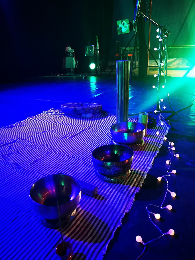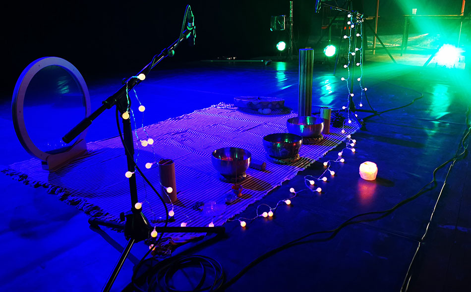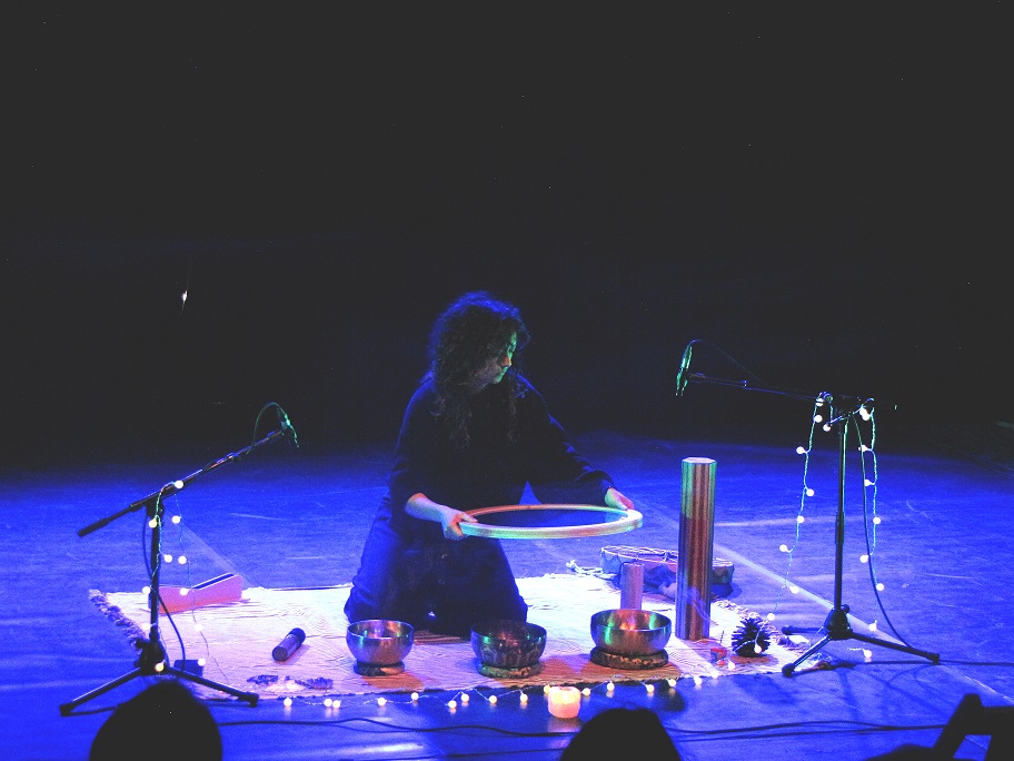 Une expérience méditative, une relaxation, réalisée avec des bols chantants tibétains, arbre de pluie, koshis et tambour.