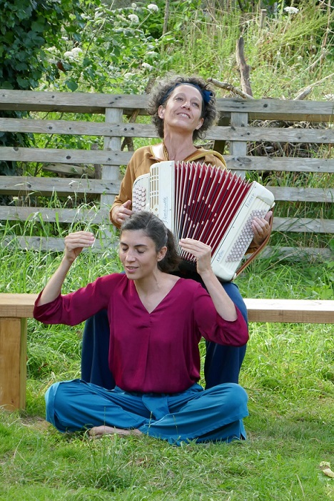 Elles les revisitent, s’amusent de la poétique des langues, le français et la langue des signes française. A nue, à coeur, en corps et en choeur Claire et Marie nous partage une complicité joyeuse qui fait du bien.